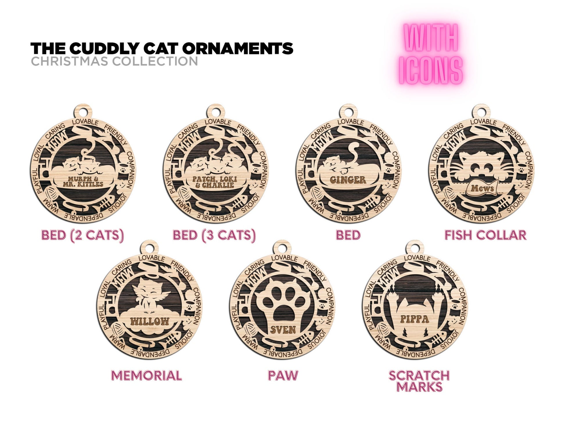 Introducing a variety of Cuddly Cat ornaments to celebrate your furry feline during the holidays. This ornament is a great customizable keepsake to celebrate your cuddly cat and the important role that they play in your life