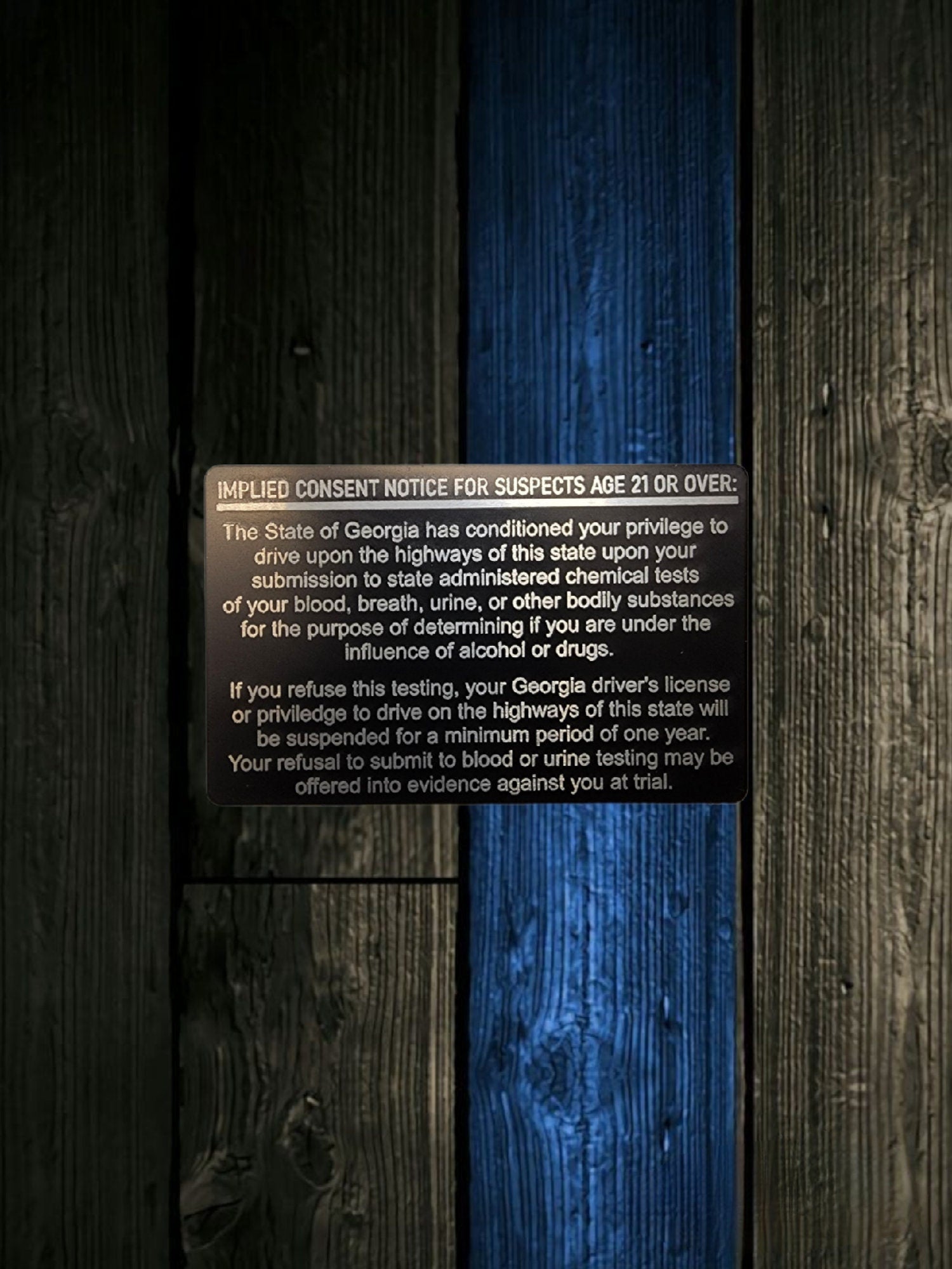 Georgia Implied Consent Card - implied consent, georgia, police, sheriff, trooper, dwi, cop, laser engraving