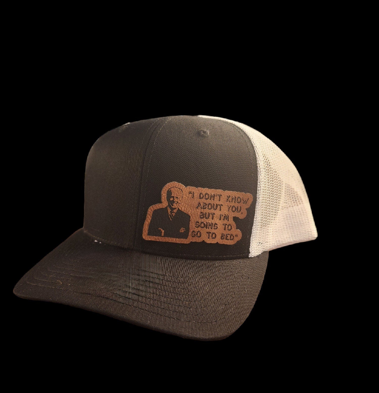 Joe Biden I'm Going to go to Bed Leather Patch Hat - joe biden, patch hat, custom hat