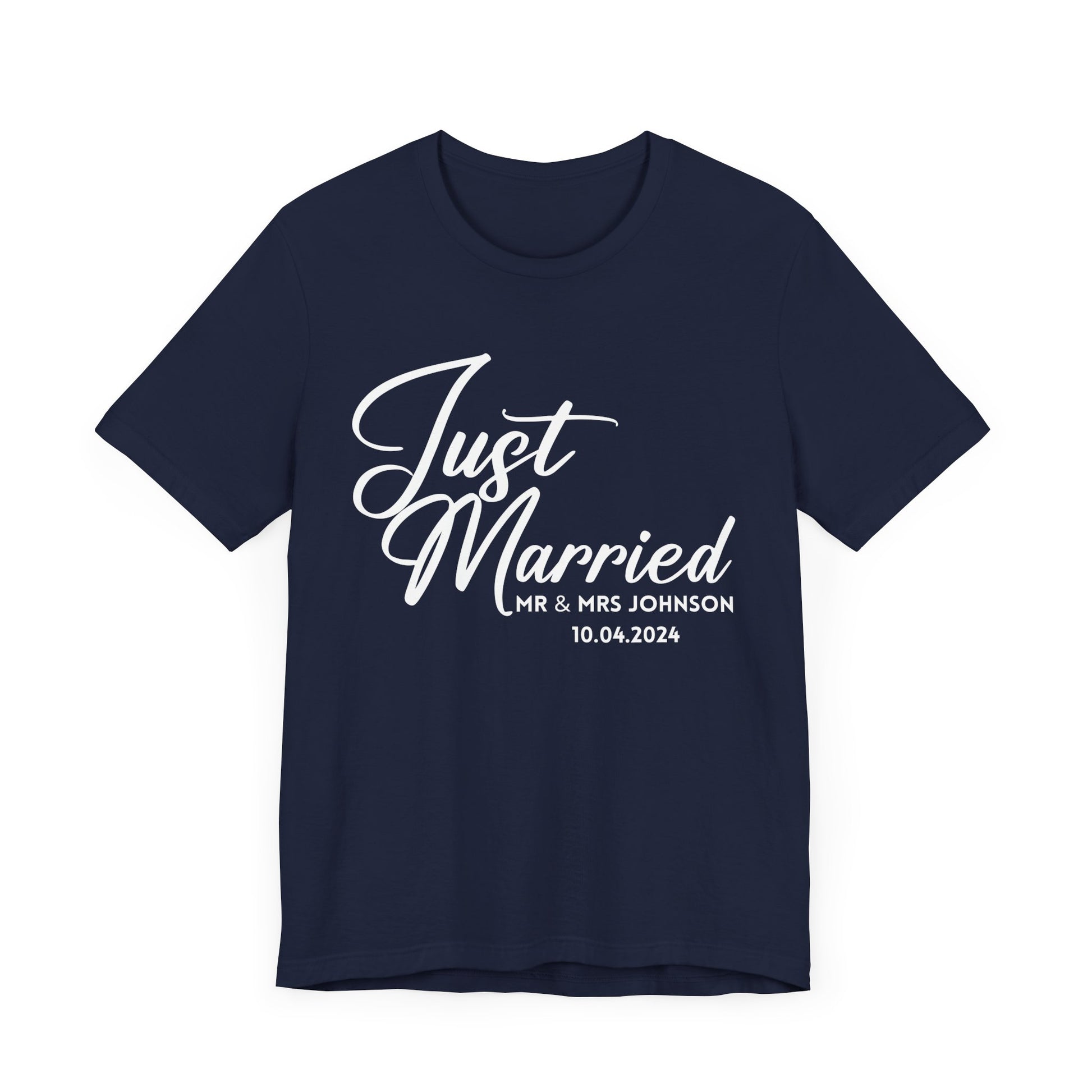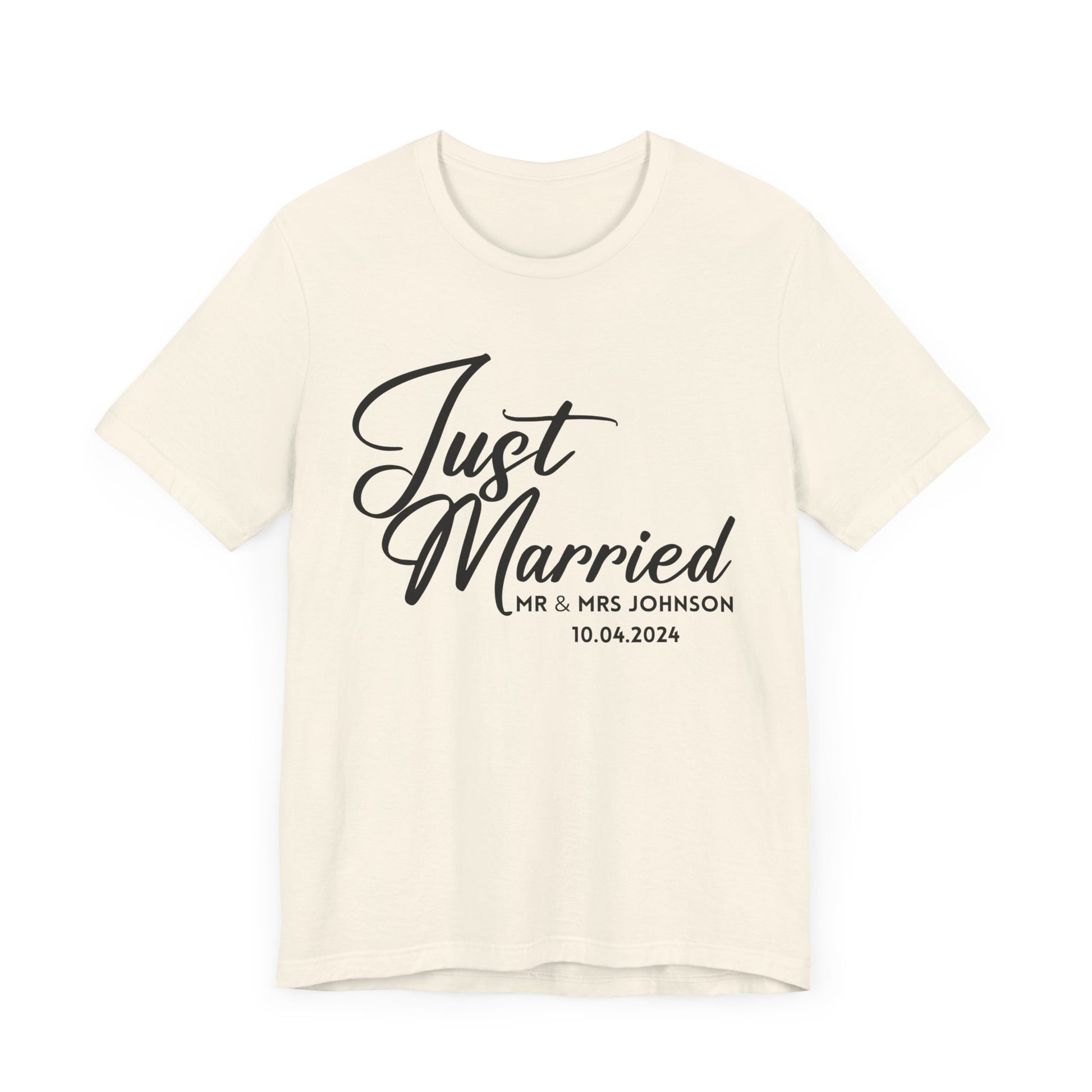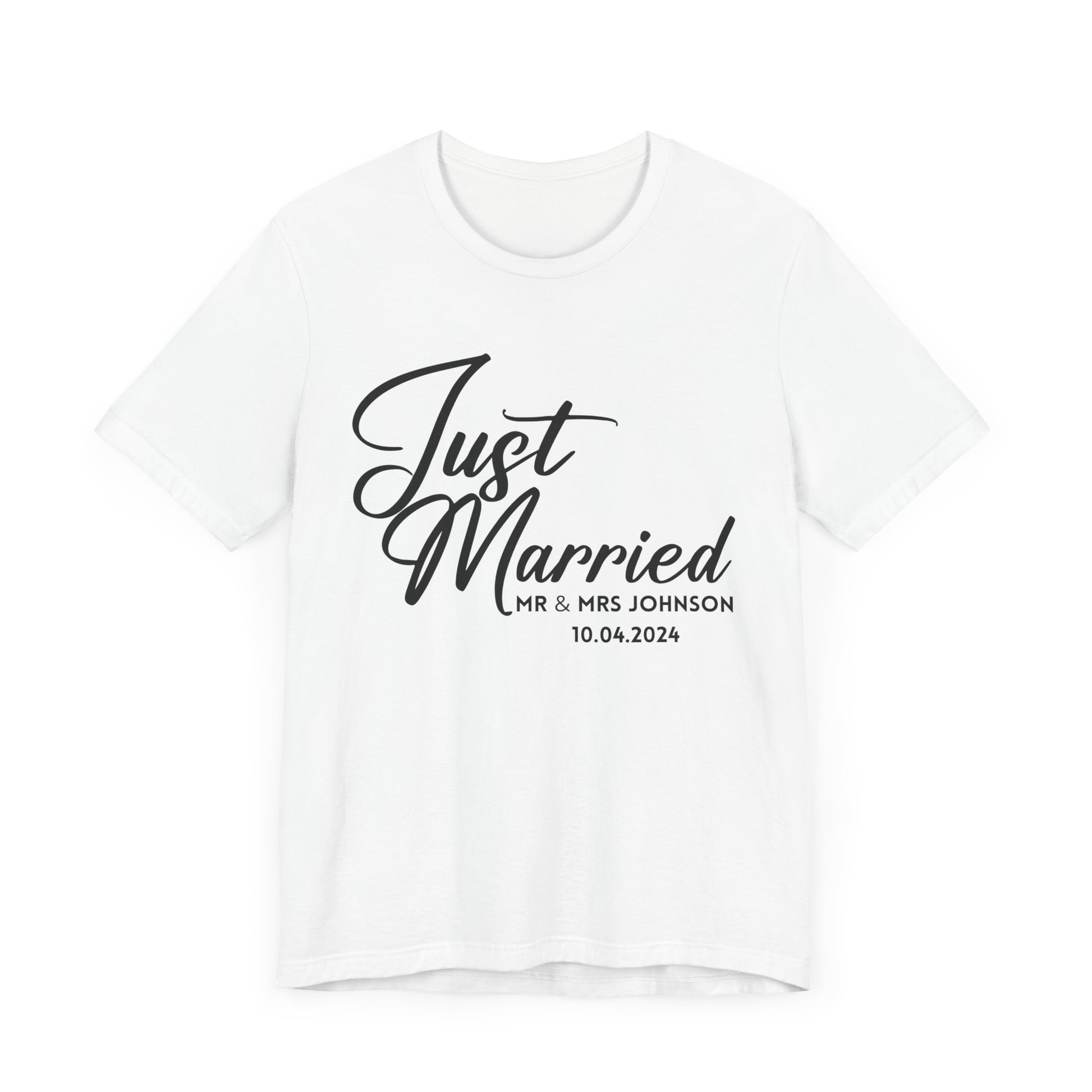 Just Married Personalized Tee, Wedding Date Shirt, Custom Unisex Jersey Top, Bride Groom Gift, Honeymoon Shirt, Mr Mrs Shirt, Marriage
