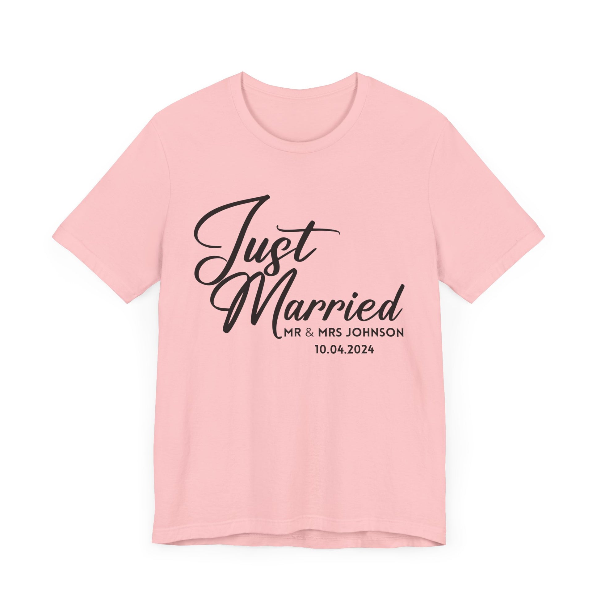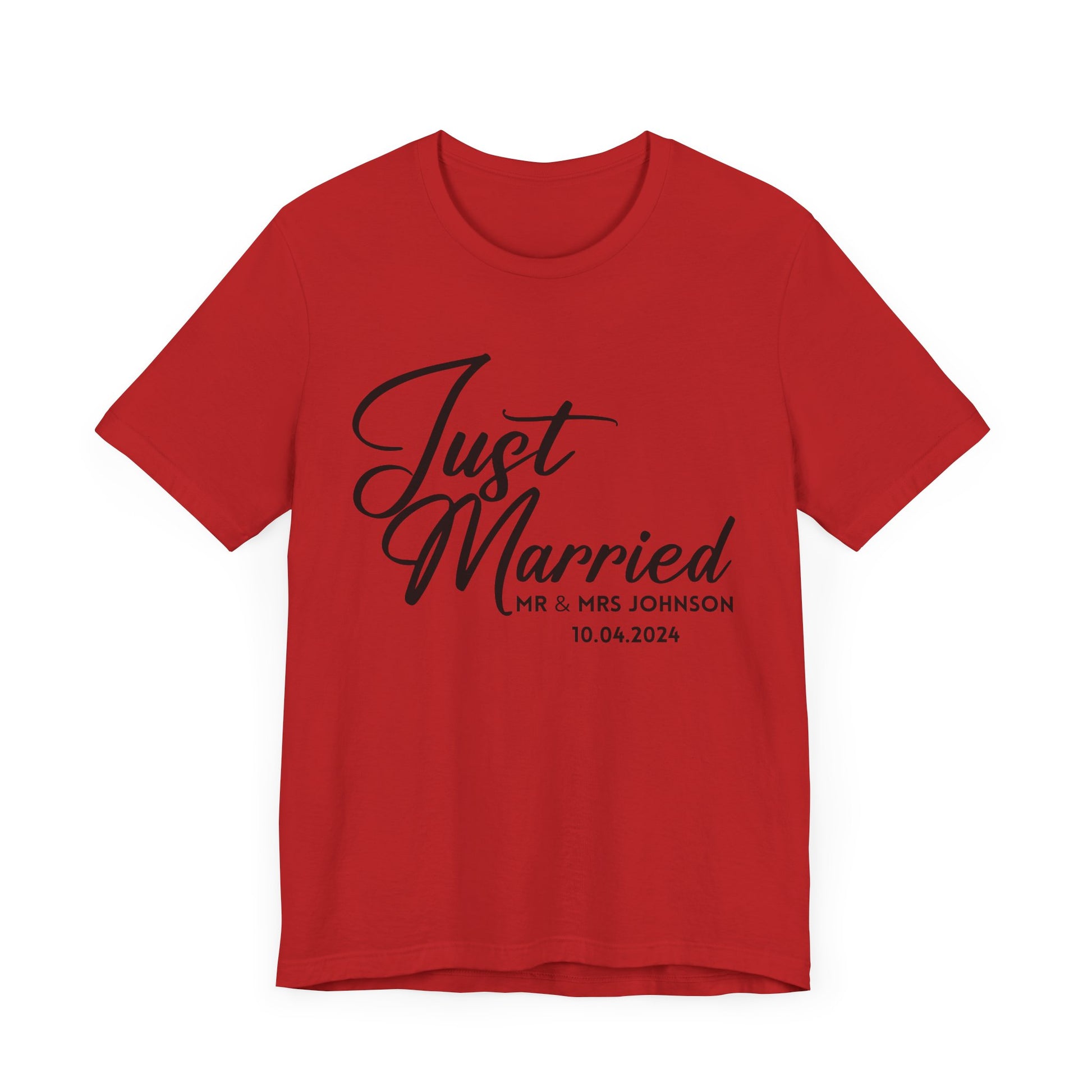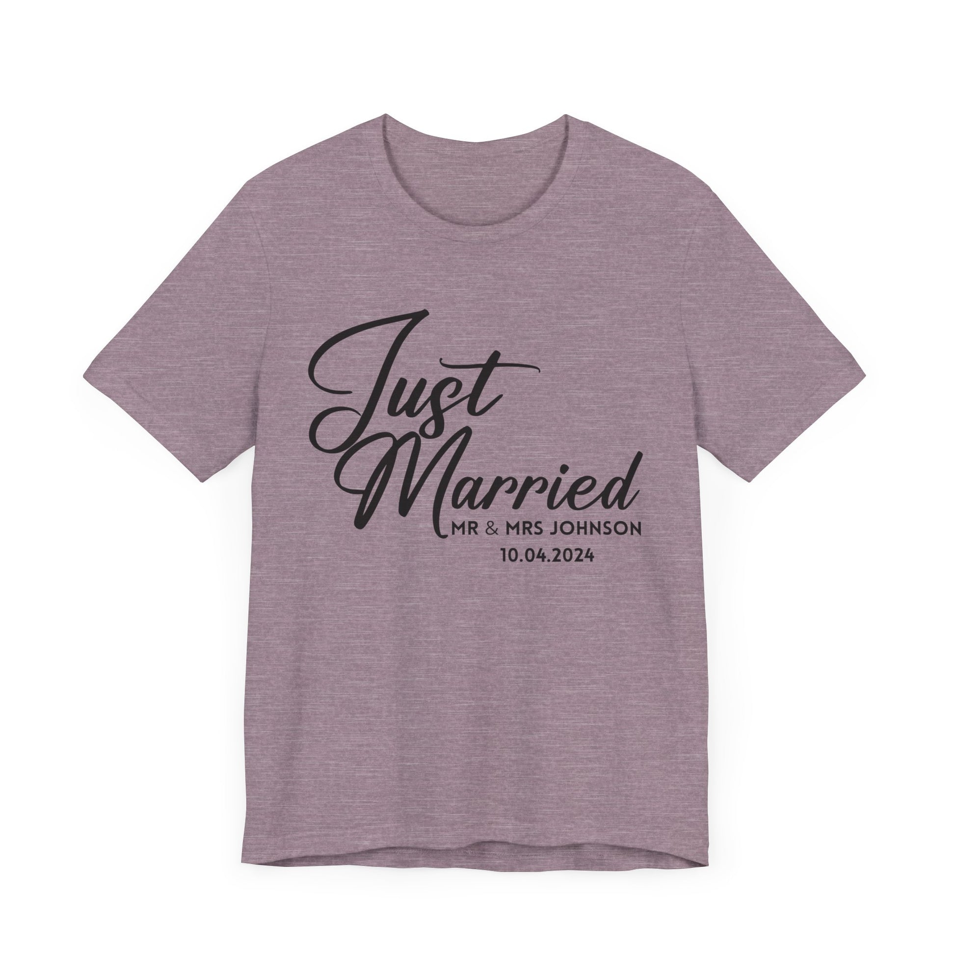 Just Married Personalized Tee, Wedding Date Shirt, Custom Unisex Jersey Top, Bride Groom Gift, Honeymoon Shirt, Mr Mrs Shirt, Marriage