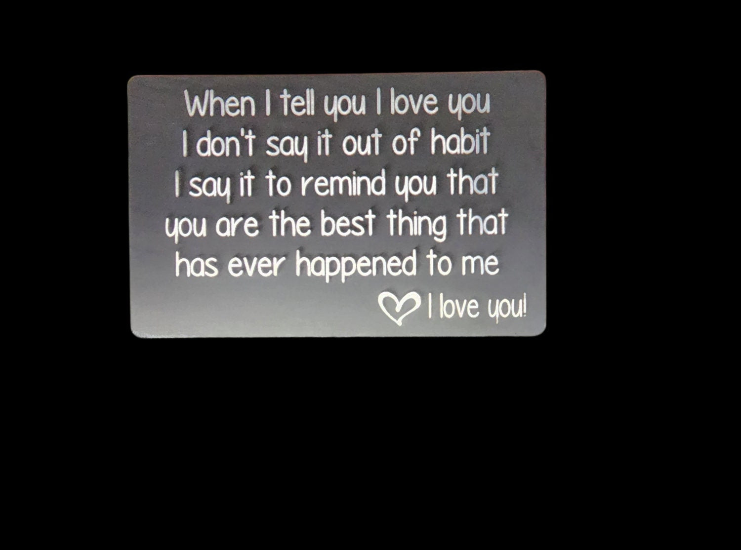 Our metal cards will be the perfect gift for any occasion - birthdays, Valentines Day, weddings, anniversary's, Mother's Day, or any day! Show the one you love how special they are. These metal cards are the perfect size to keep in a wallet, or pocket. Remind them you will always love them, and continue to choose them everyday. These cards are laser engraved, so they will not fade.