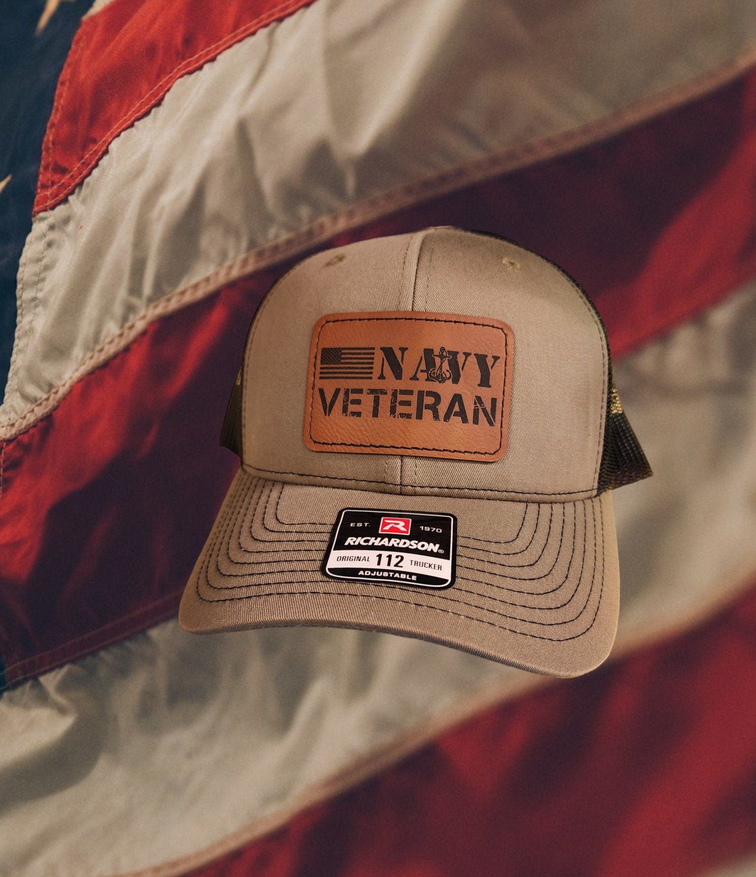 Navy Veteran Leather Patch Richardson Hat - snapback, leather patch hat, perfect gift for veterans