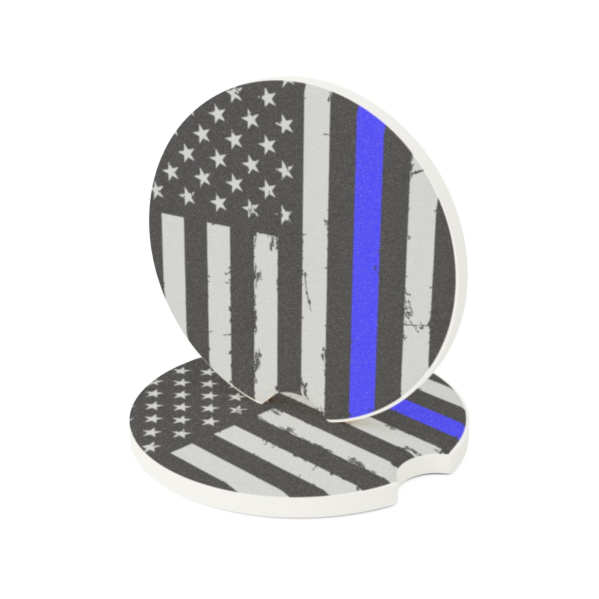 Patriotic Soapstone Car Coaster | Blue Line American Flag Design, Union Support Gift, Custom Car Decor, Summer Road Trip Accessory, Car