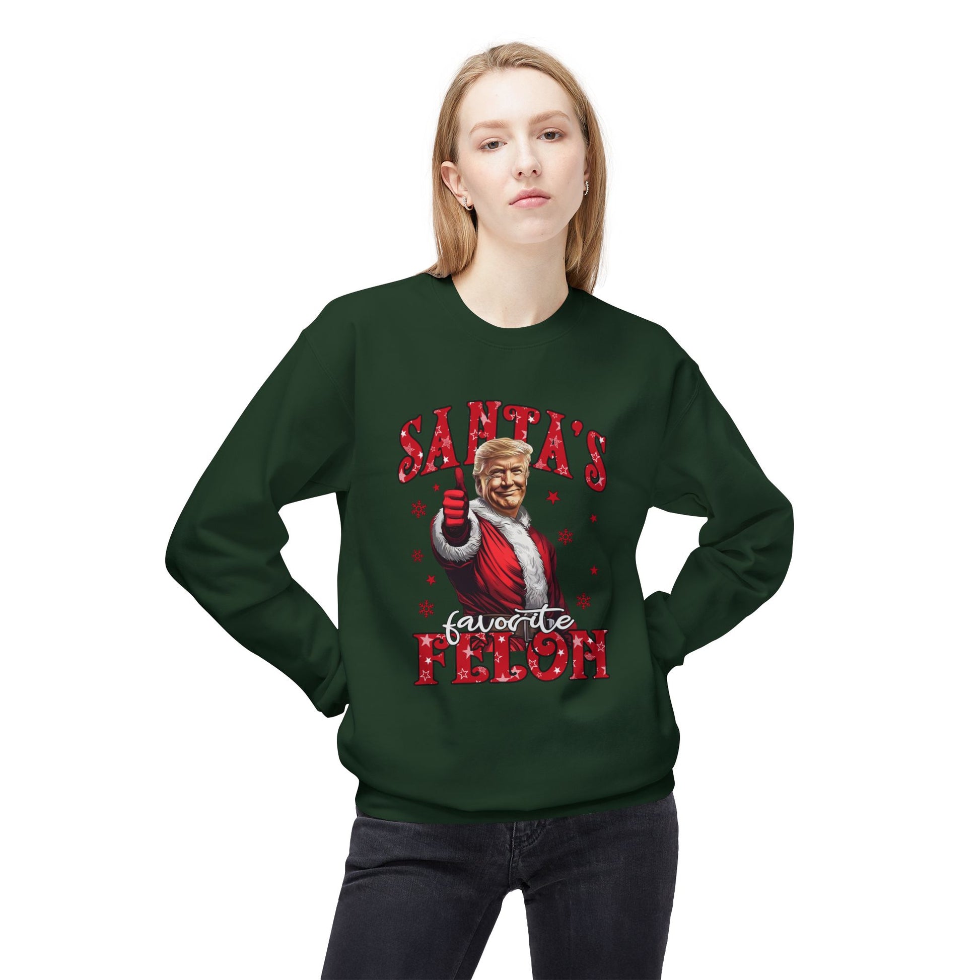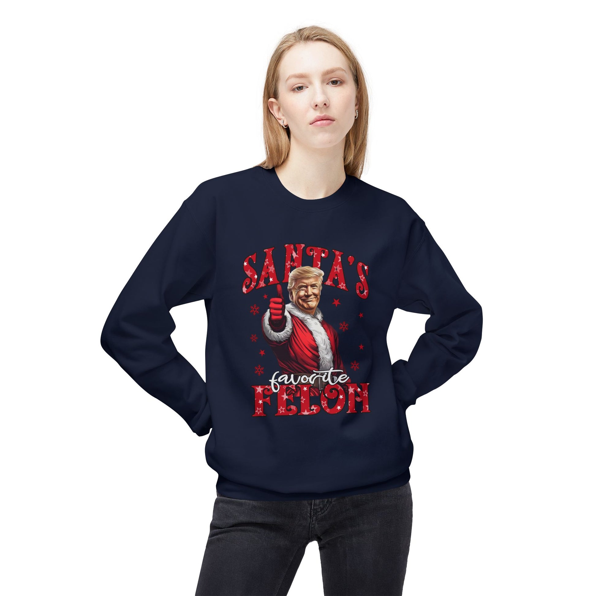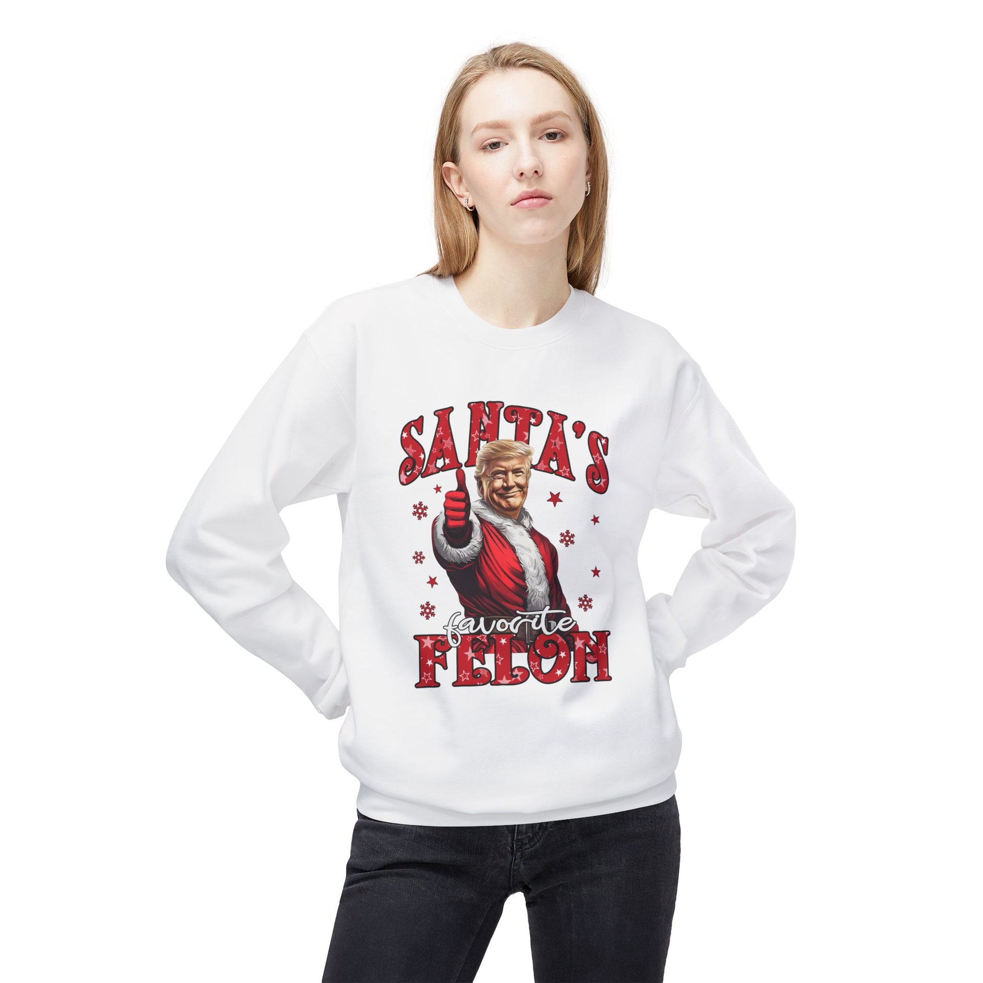 Santa's Favorite Felon Trump Christmas Sweatshirt, Funny Political Holiday Jumper, Humorous President Xmas Pullover, Soft Fleece Crewneck