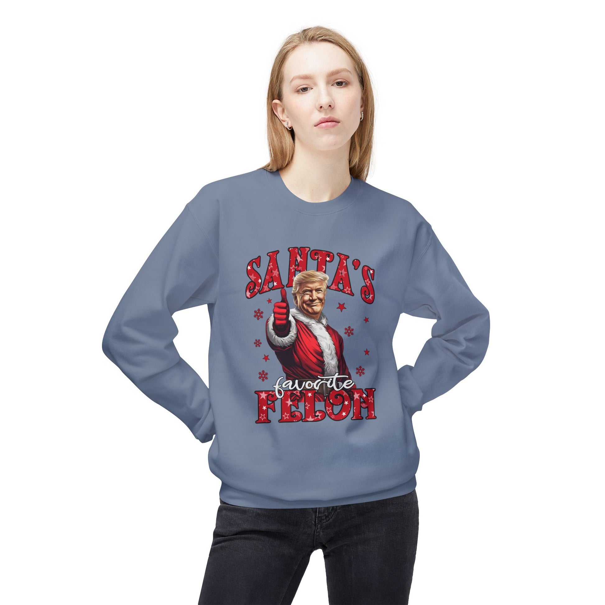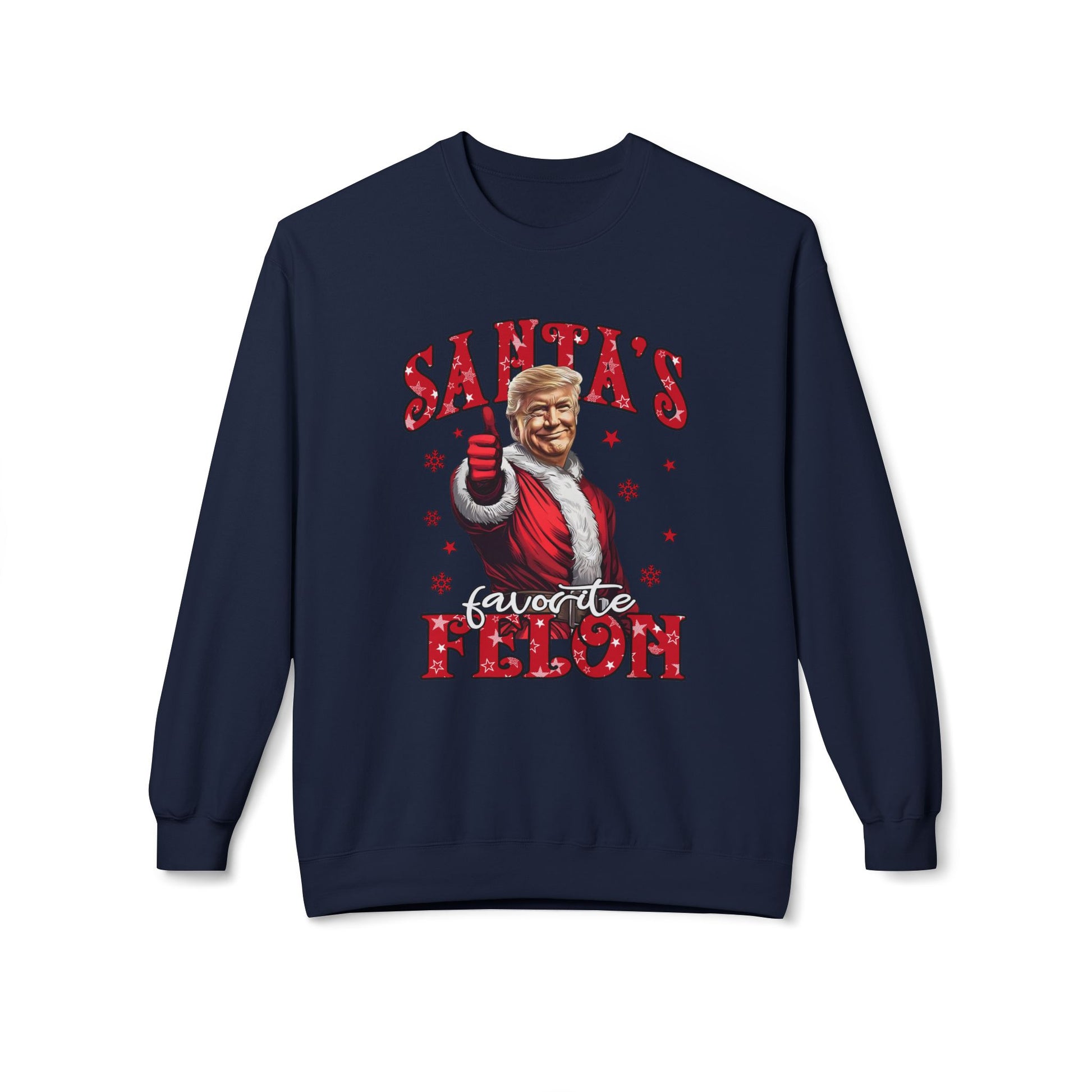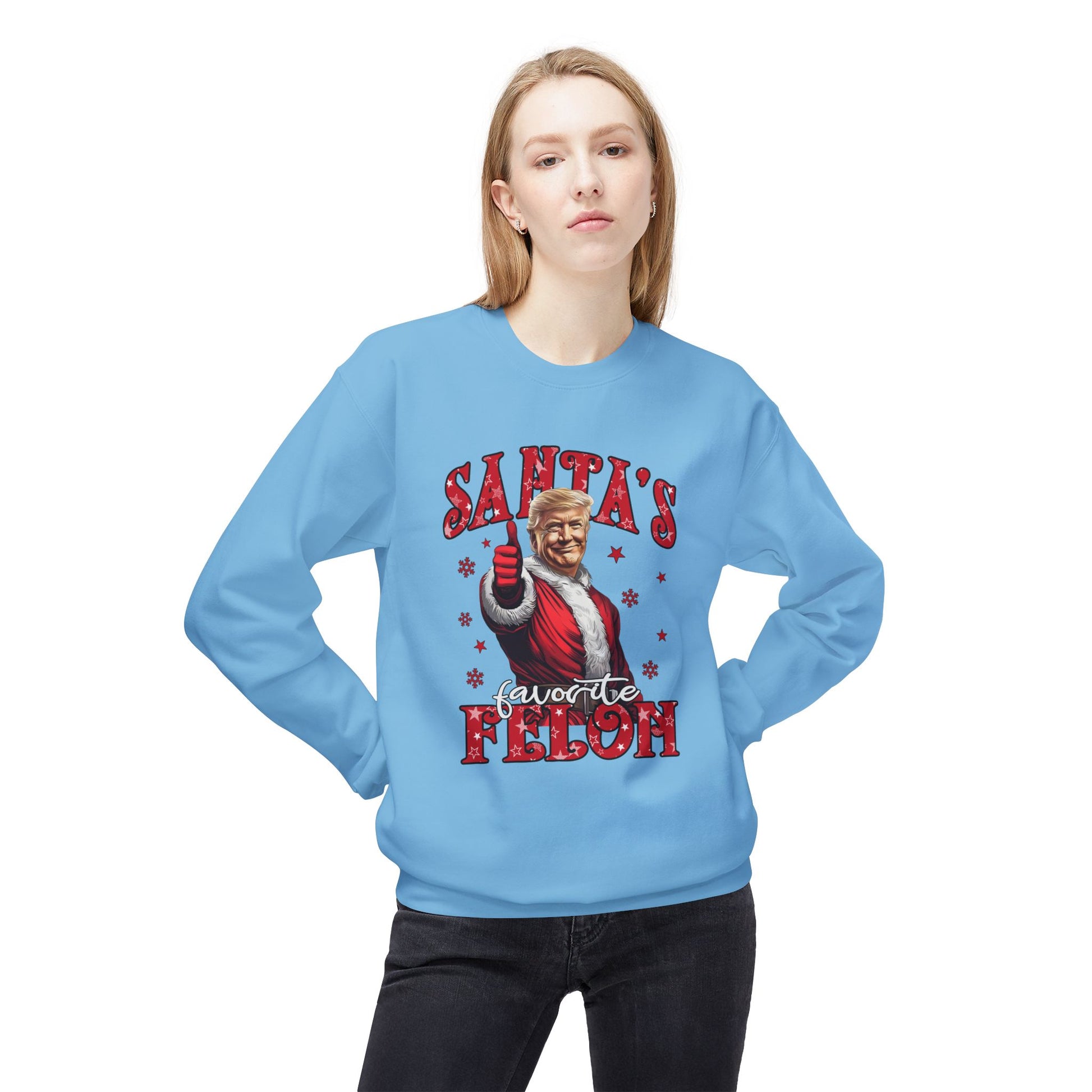 Santa's Favorite Felon Trump Christmas Sweatshirt, Funny Political Holiday Jumper, Humorous President Xmas Pullover, Soft Fleece Crewneck