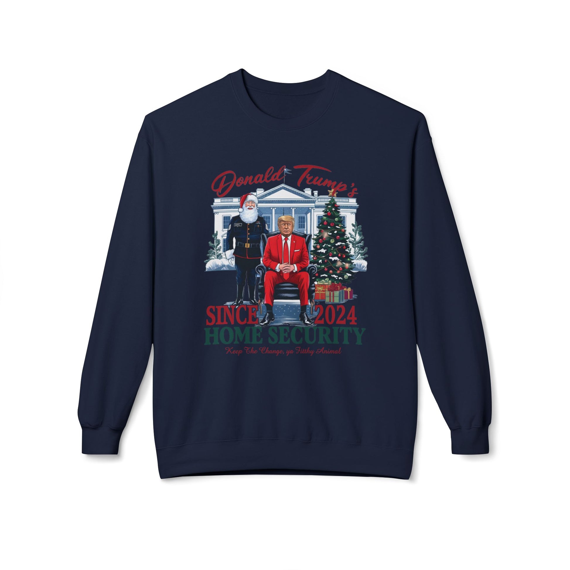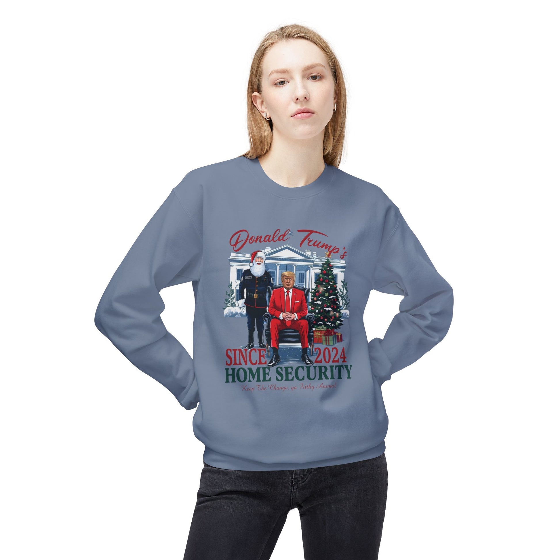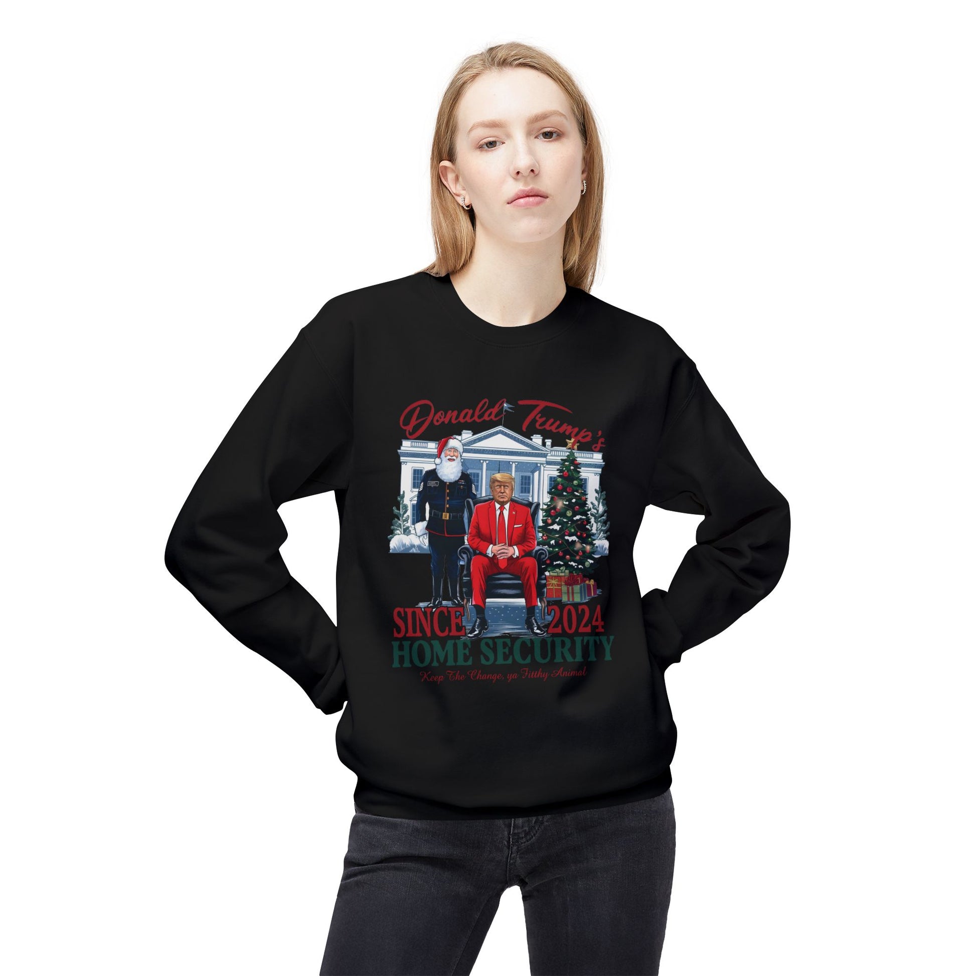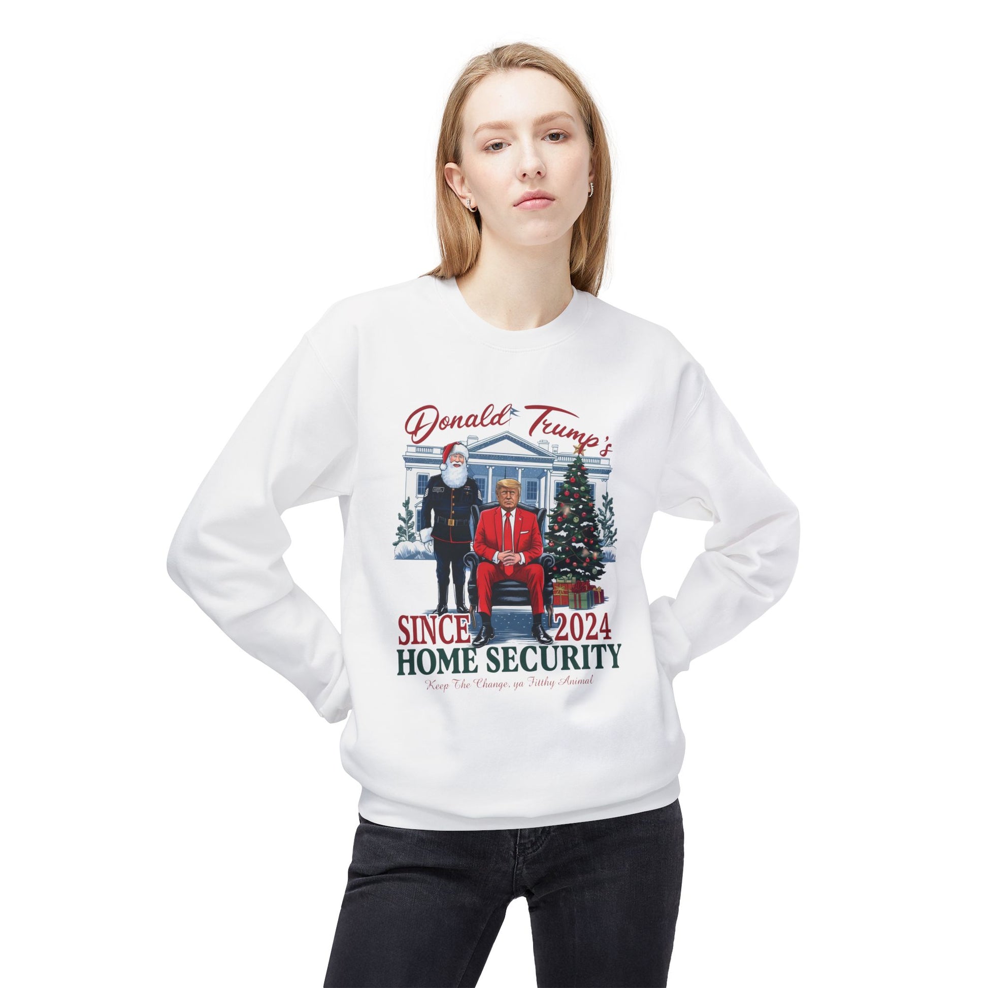 Trump Home Security Christmas Sweatshirt, Funny Political Holiday Jumper, Humorous President Xmas Pullover, Soft Fleece Crewneck