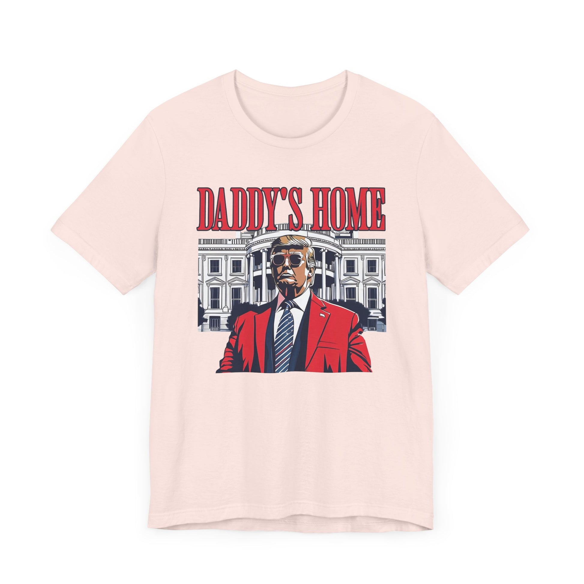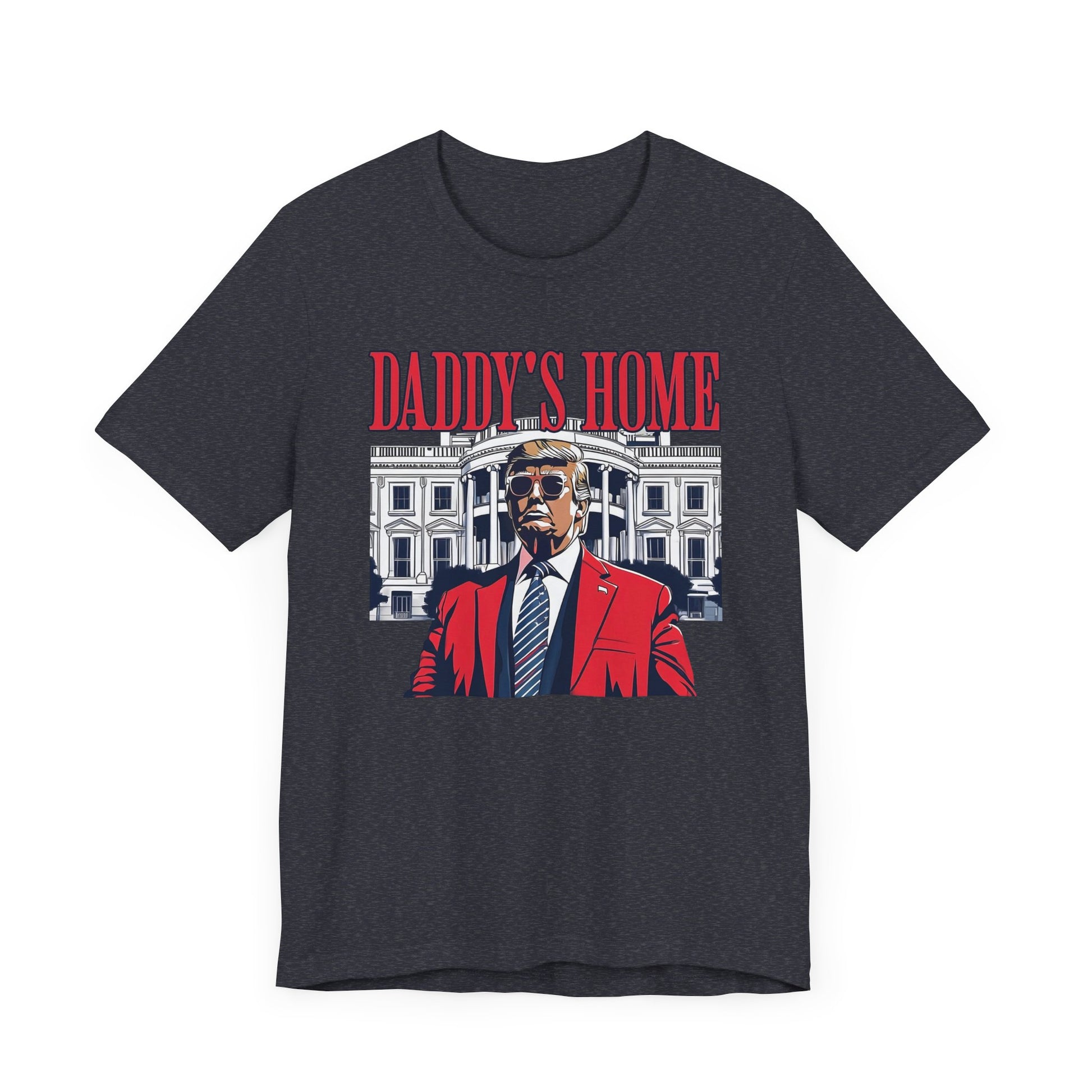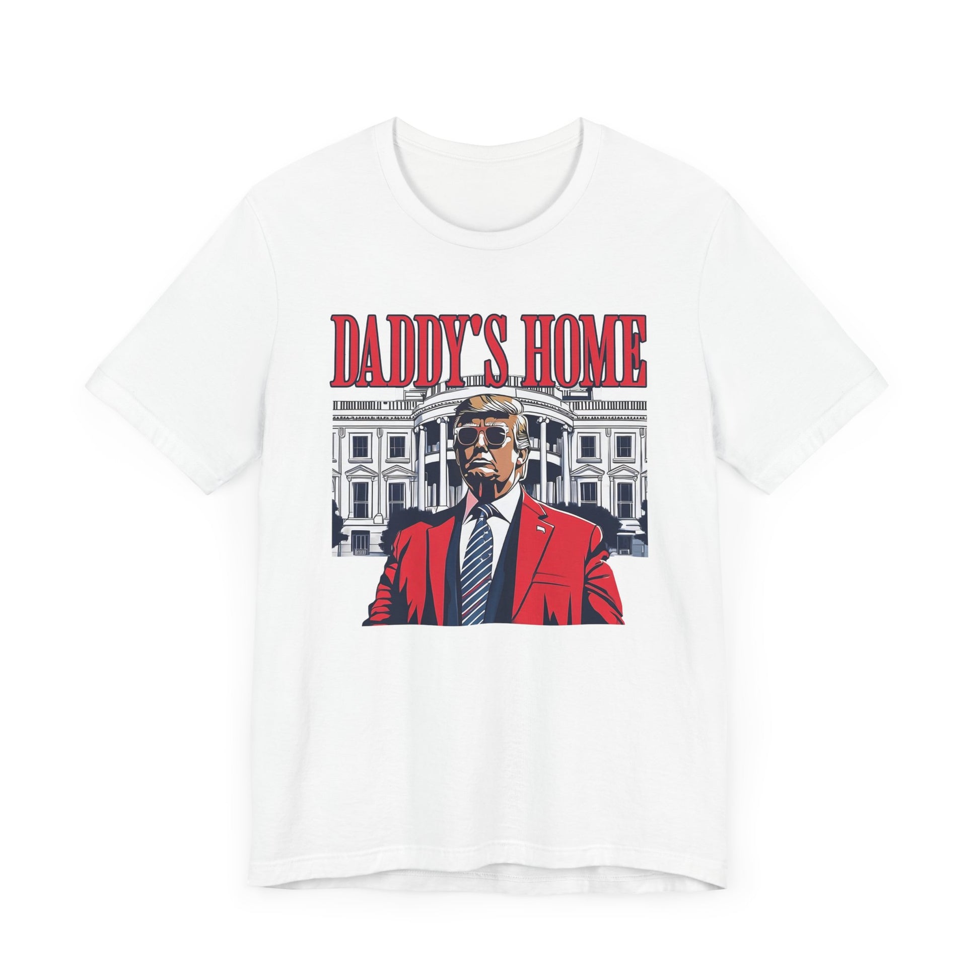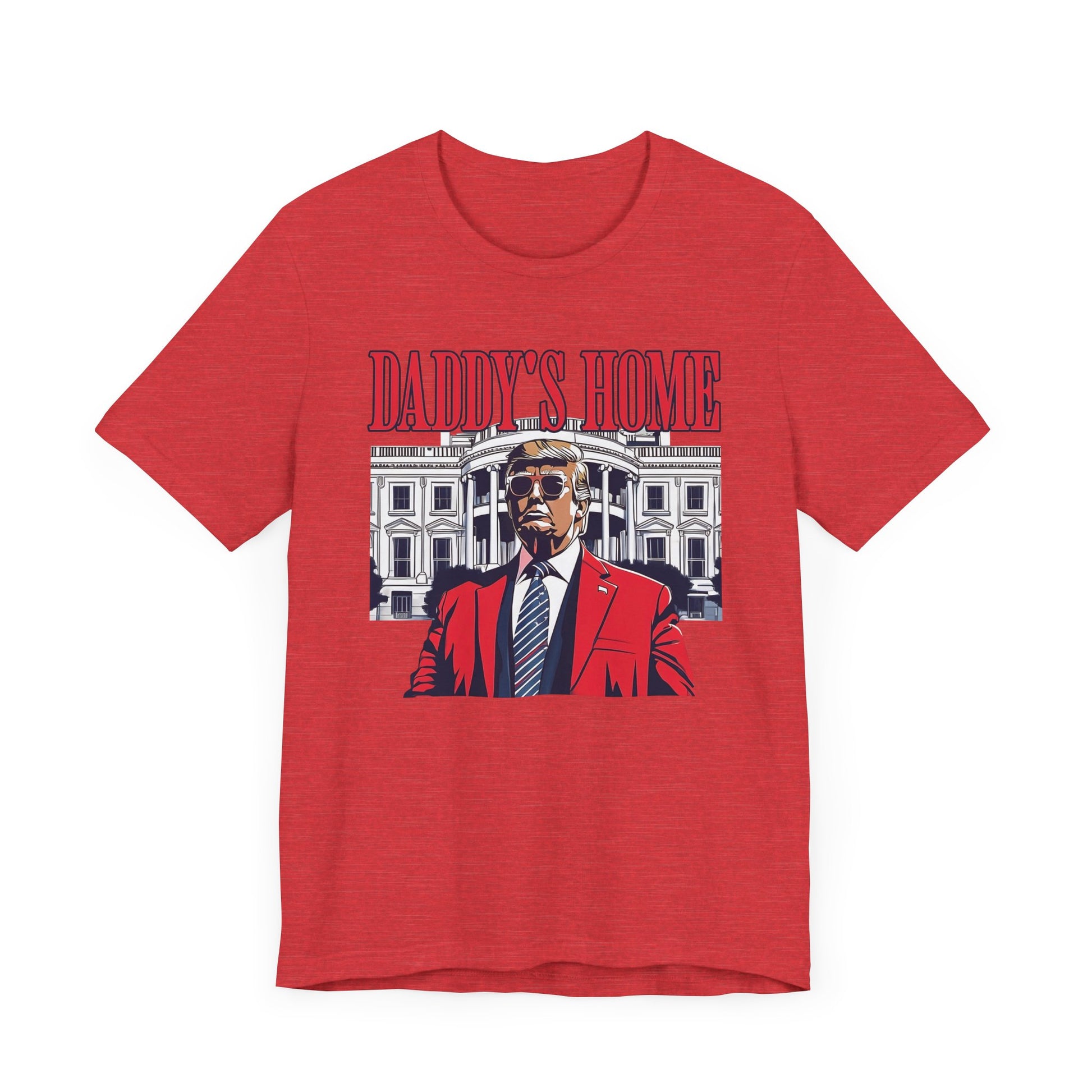This Daddy's Home Trump White House T-Shirt exudes a casual yet bold vibe, perfect for making a statement. It is ideal for those who enjoy expressing their political views and humor through their clothing. Relevant for holidays like Father's Day, Fourth of July, and political events.