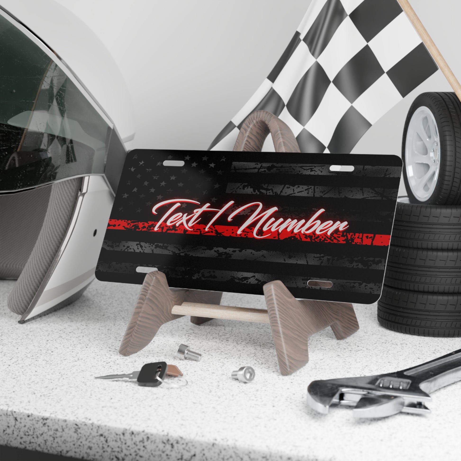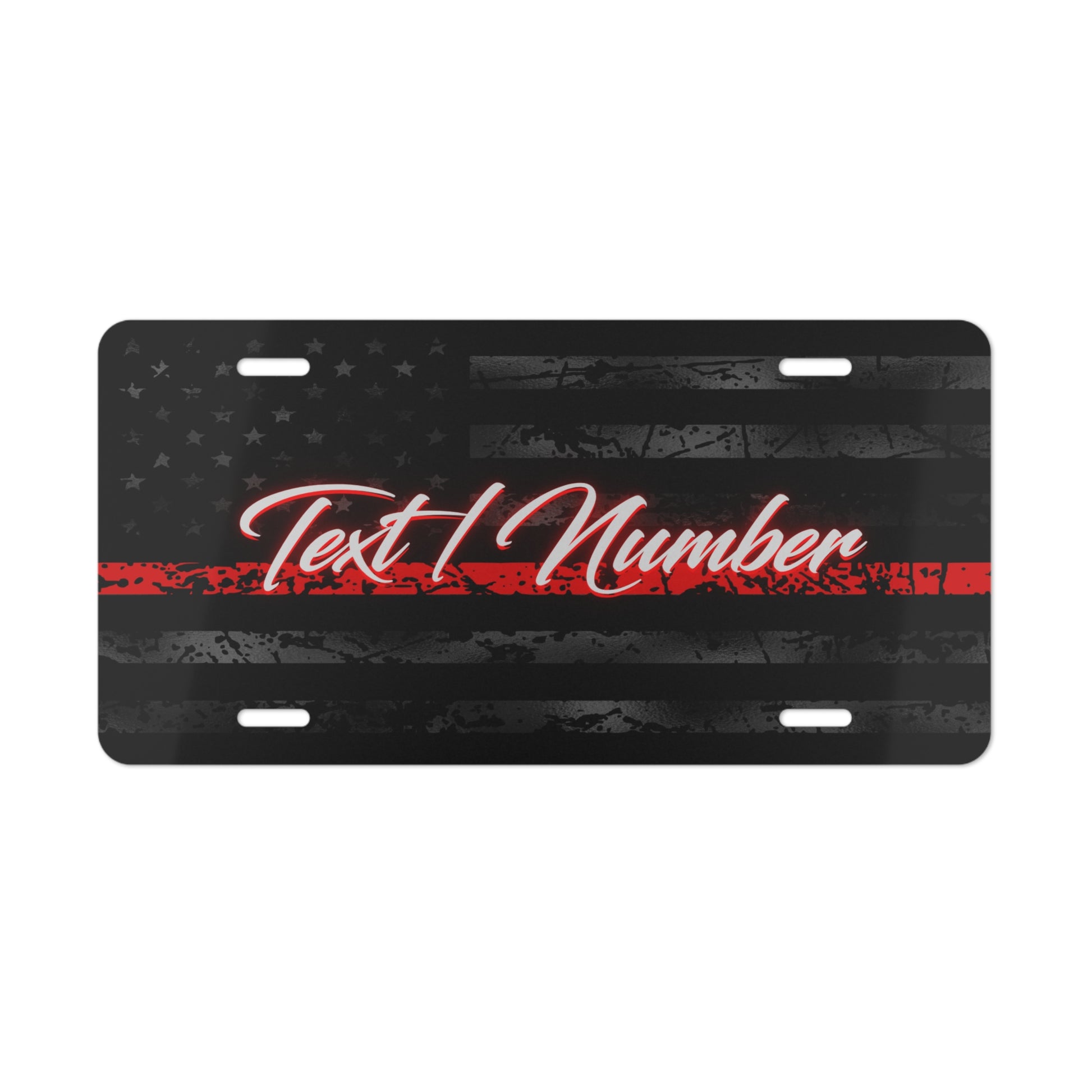 A customizable Thin Red Line vanity license plate for firefighters, featuring your department name, number, or any personalized text. Show your support and pride for the firefighting community with this eye-catching accessory. Perfect for firefighters, fire department members, and supporters. Ideal for Firefighter Appreciation Day, Fire Prevention Week, and Christmas gifts.
