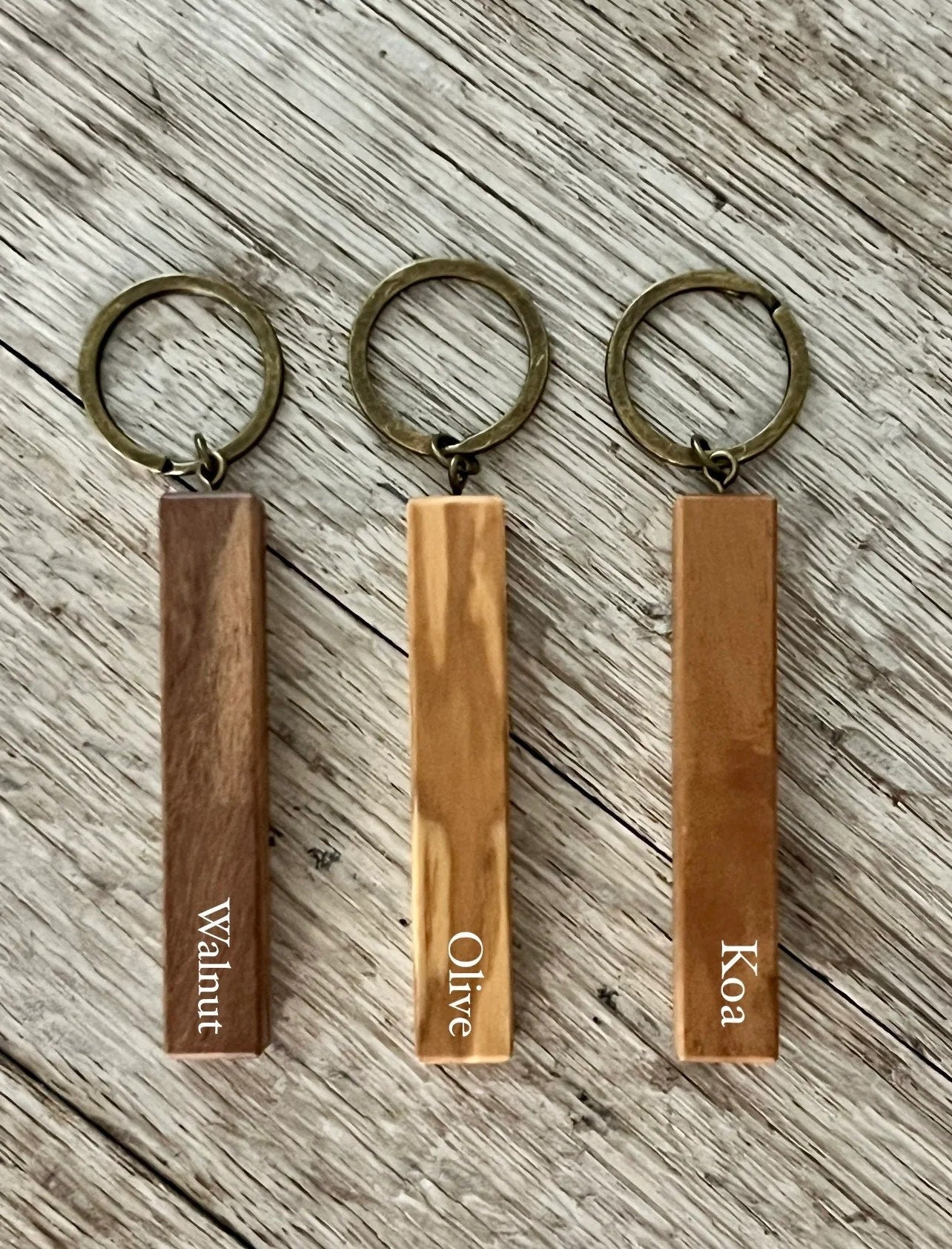 3. Then choose the type of wood you would like. The bar keychain is available in koa, walnut and olive wood.