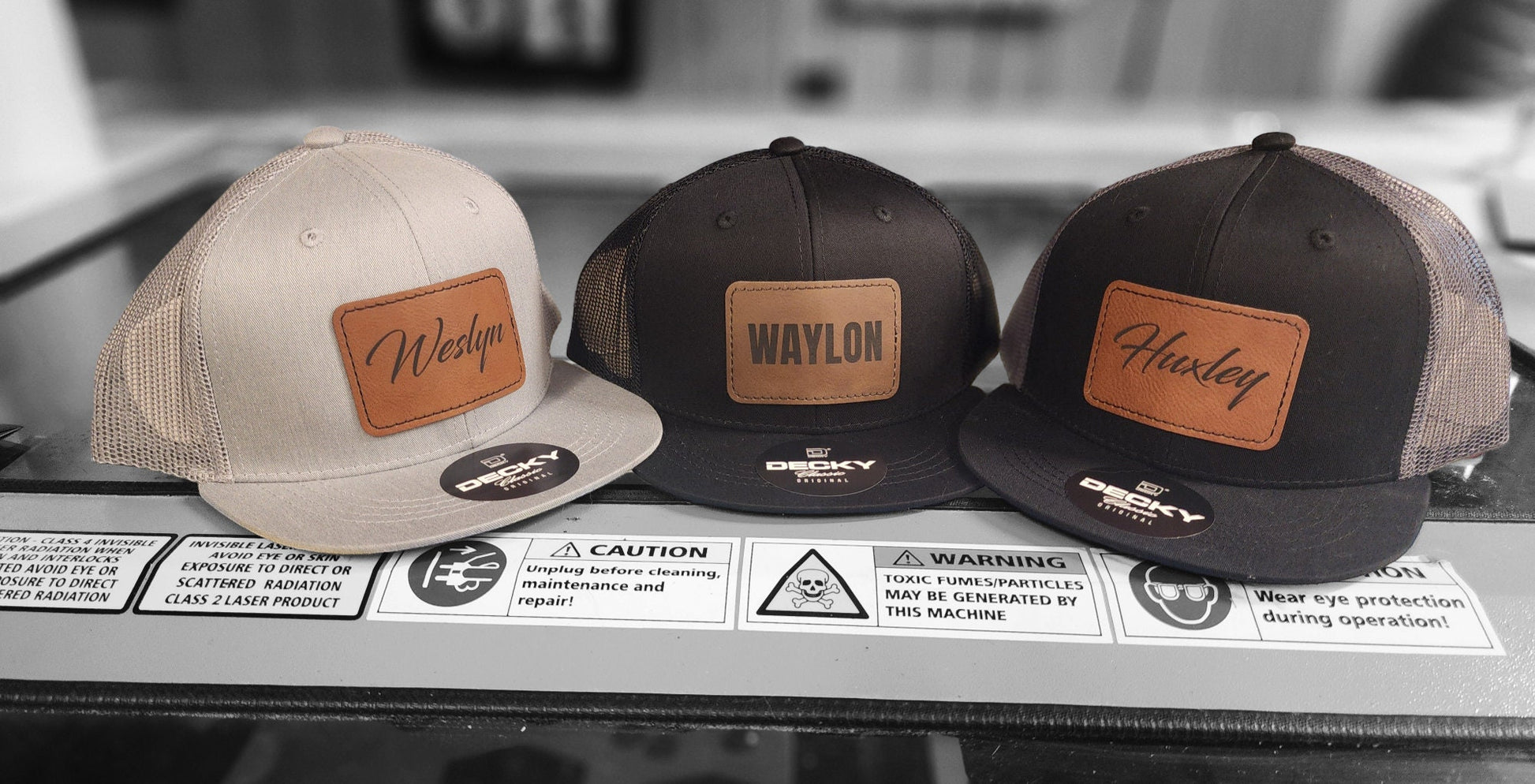 This Decky 5019 youth classic trucker snapback hat will be the perfect gift to keep your little one stylish. These hats feature a custom leatherette engraved patch on the front with their name, nickname, or whatever you want on the patch.